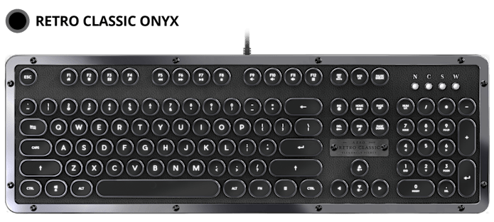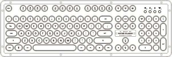 We elegantly designed a custom logo plaque with premium grade brushed anodized aluminum. Each plaque is embossed with the product name and filled with a glossy lacquer paint for a classy shine. This exquisite finish provides the feel of exclusiveness to each and every Retro Classic Keyboard.
