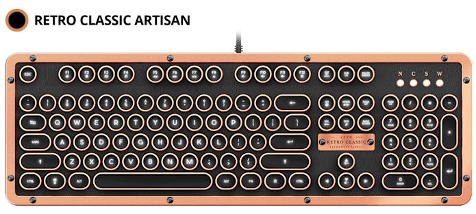 Last year we launched the original MK Retro typewriter inspired mechanical keyboard and it was one of the coolest keyboards we have ever launched. It was an exciting product in its own right but there were many shortcomings that we wanted to improve upon. This year, we took the basics of our original MK Retro and set out to make a mechanical keyboard that truly excited us and hopefully you as well. We took feedback from customers and created one of the most luxurious mechanical keyboards available. Introducing the AZIO Retro Classic.