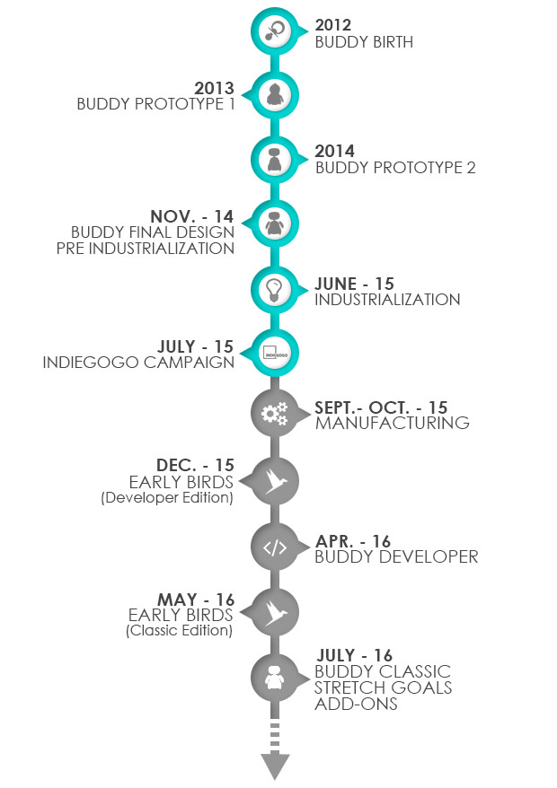 - The first Classic Edition of BUDDY (Early bird perks) will ship in May 2016. All the other perks will ship in July 2016.