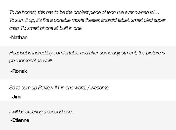 The Cinego is so light because we removed the heaviest component (the battery) out of the headset and placed it in the handheld remote.