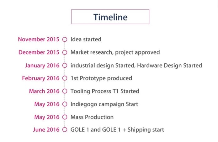 All backers of the Indiegogo Campaign who ordered until the initial deadline of June 30th 2016, will get it shipped by around July 20th 2016 using fast 4-12 day DHL from Shenzhen China to worldwide. New backers on Indiegogo InDemand ordered from July 1st to July 28th will get it shipped by around August 17th. This is because Indiegogo requires up to 15 business days to transfer the money to Gole's bank account. And after the Initial Indiegogo campaign deadline of June 30th, then Indiegogo transfers the money to Gole through their InDemand program once every 4 weeks.