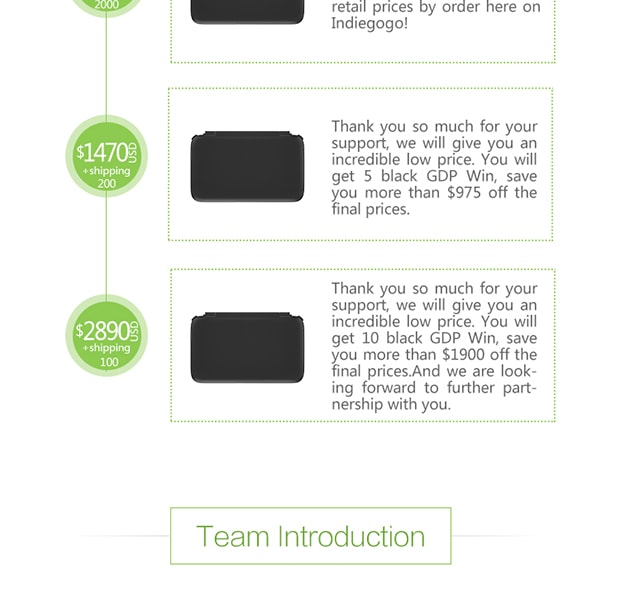 A:We are a company specialized in the design and manufacture of video games consoles.And we all have a dream to make a portable handheld PC/Gaming consoles based on Windows system.so we make GPD WIN.About the flexible goal ,No matter the found raise is succeed or not.we will be surely complete this perfect device!!!Of cause,we all hope you can help us to make this campaign success.So we will have more confidence for GPD WIN!!!