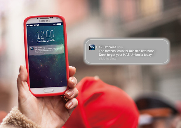 The HAZ Umbrella app conveniently notifies you of the latest weather information if you forget or are too busy to check the weather forecast before you go out, reminding you to carry the HAZ Umbrella whenever needed. You'll never get caught by an afternoon shower, or exposed to high UV rays.