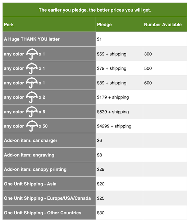 Please click and share our campaign with your friends and family on Facebook, Twitter, and other social media, and let the world know about our innovative smart umbrella. Your support and encouragement are greatly appreciated!