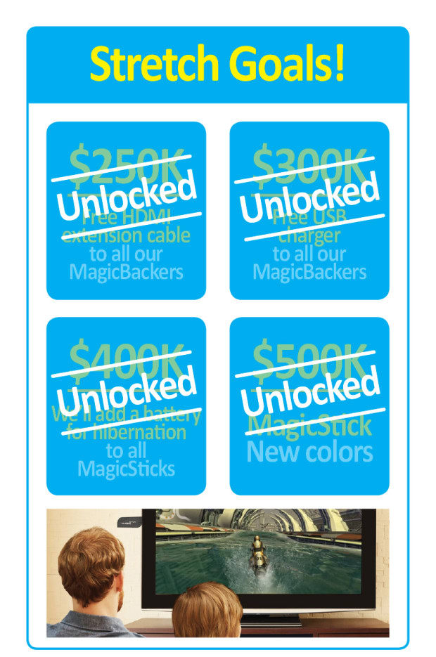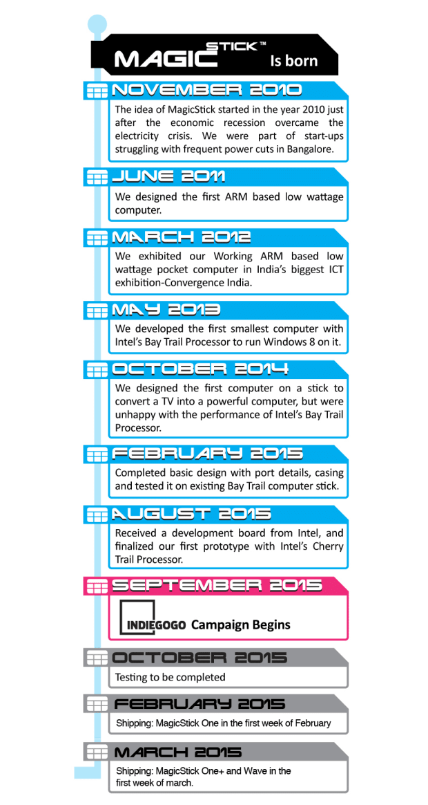 We have been working on a similar device since May 2013, that is why we have a complete confidence in our ability to successfully deliver this product. We have an experienced team, very skilled both with hardware and software integration, and we are absolutely confident that we can ship MagicStick according to our timeline. We have already completed and tested several models of the prototype using the old Intel’s Bay Trail Processor. This has helped us not only to acquire the proper know-how but also to build a solid and proficient professional relationship with all suppliers involved in the production process.