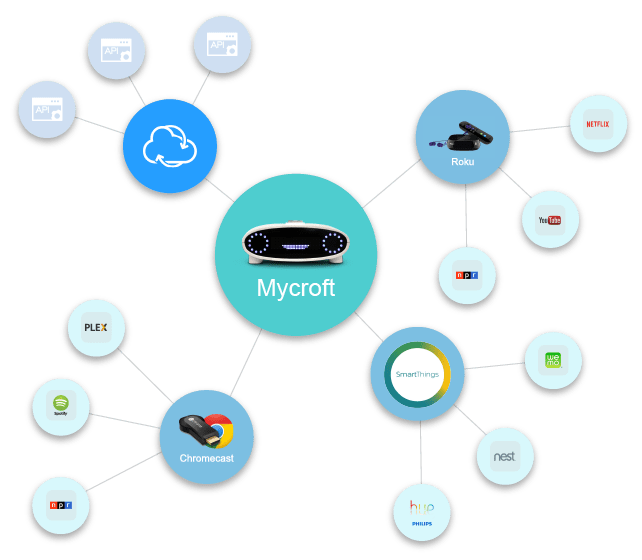 Mycroft has a lot of native skills and abilities baked in and, since it is open source, it allows outside developers to add more features over time.