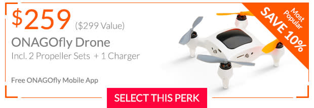 | How do I choose more than one perk? | The Indiegogo system is not set up to choose multiple perks. If you would like to choose more than one perk, you will need to initiate a separate process for each pre-order. If you encounter difficulties, please email support@ONAGOfly.com and use "NEED HELP WITH ORDERING" as the subject line. |