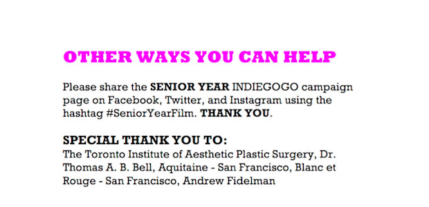 thank you in END CREDITS, an HD DIGITAL DOWNLOAD of SENIOR YEAR, signed copy of the official SENIOR YEAR poster, IMDb credit