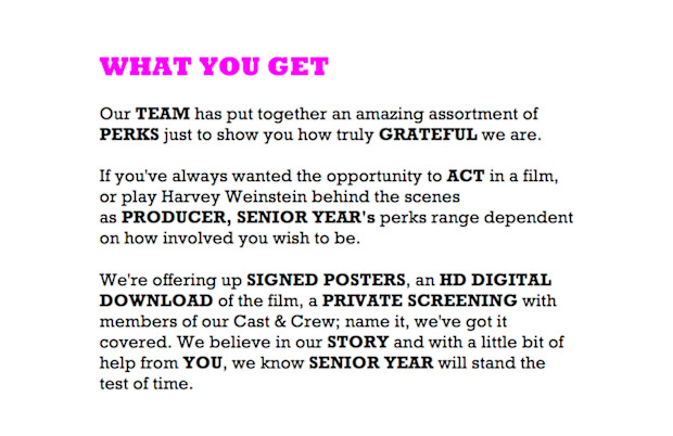 PRIVATE SCREENING of the film with Cast & Crew, thank you in END CREDITS, an HD DIGITAL DOWNLOAD of SENIOR YEAR, signed copy of the official SENIOR YEAR poster, IMDb credit