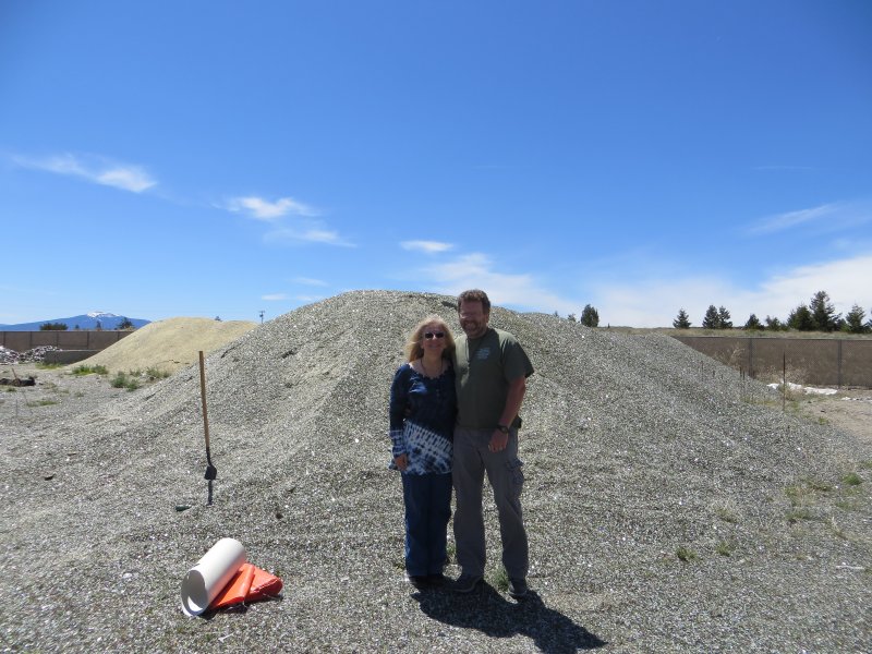 A mountain of recycled glass - we used 1600 pounds in our base layer