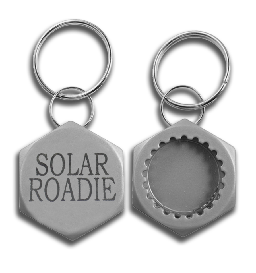 Made from actual solar cells damaged during the assembly of the 108 Phase II prototype Solar Road Panels. We hope you like the way that we are re-purposing our scrap solar cell material and honoring its historical significance. Only available while remaining supplies last.