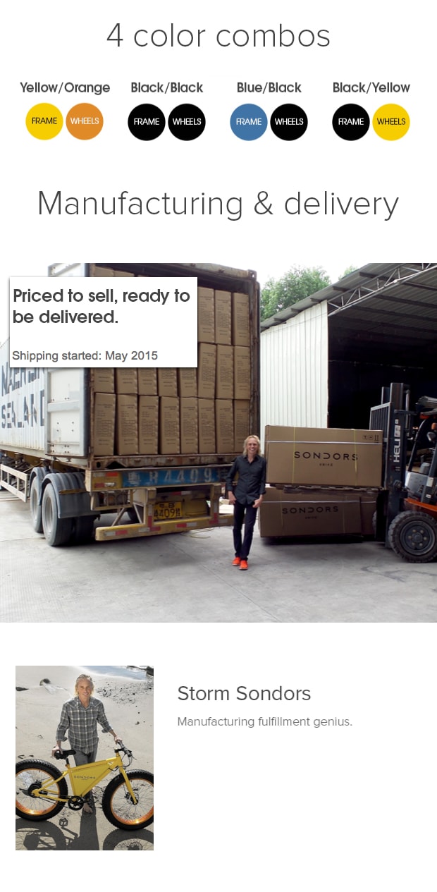 Storm Sondors is 100% committed to creating the first affordable eBike. Most options on the market now are far more expensive, limiting the ability for everyday people to have the opportunity to have. He hopes this is the electronic bike for the masses.