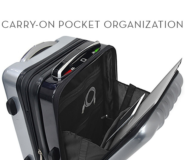 The Space Case 1 carry-on luggage has a built in laptop and electronics pockets made for easy access anytime especially through security check points. The built in pockets can hold up to a 15.6" laptop.