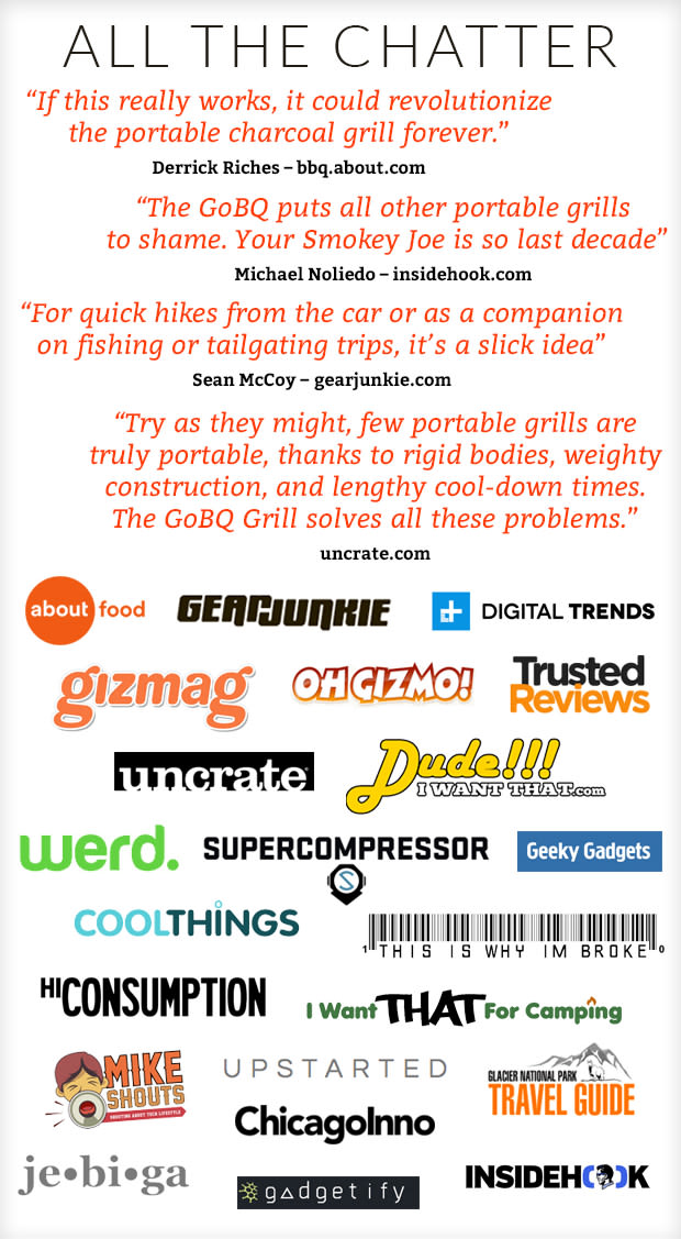 Even if you can't make a pledge, you can still help up by spreading the word about our campaign. Just click any of the share links at the top left of this page and share our campaign with your friends and family, or anyone you know who likes to grill! Thank you SO MUCH for supporting GoBQ Grills!
