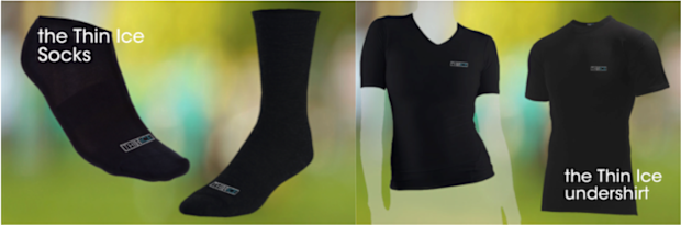 All backers will get the choice between a pair of Thin Ice Socks, or the Thin Ice Undershirt. Backers who have only purchased one (1) article of clothing will be automatically assigned the appropriate upgrade.