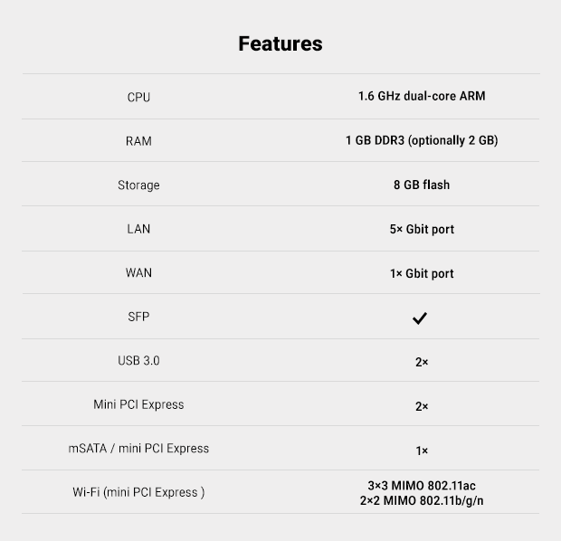 Apart from that, Turris Omnia also has SIM card slot, RTC with battery backup, crypto chip for secure random number generation, dimmable RGB LEDs, pin headers with GPIO, I²C, SPI and more.