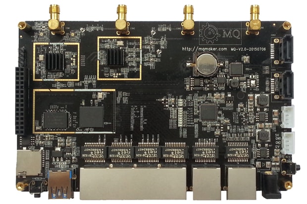 The board uses MT7621 high performance router SoC, supports open source OpenWRT OS. The board's dimension is relatively small 16cm x 10cm, about three credit card in a row.